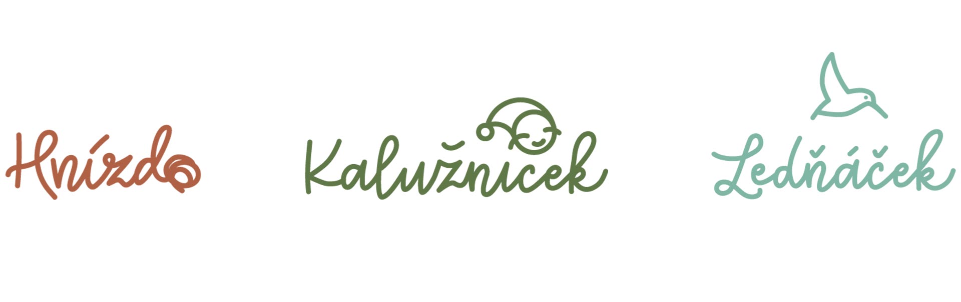 Upravili jsme hravý psaný font a zakončili ho písmenem O stylizovaným do tvaru Hnízda. Loga zřizovaných institucí pak z tohoto vizuálu vycházejí a dále ho rozšiřují.